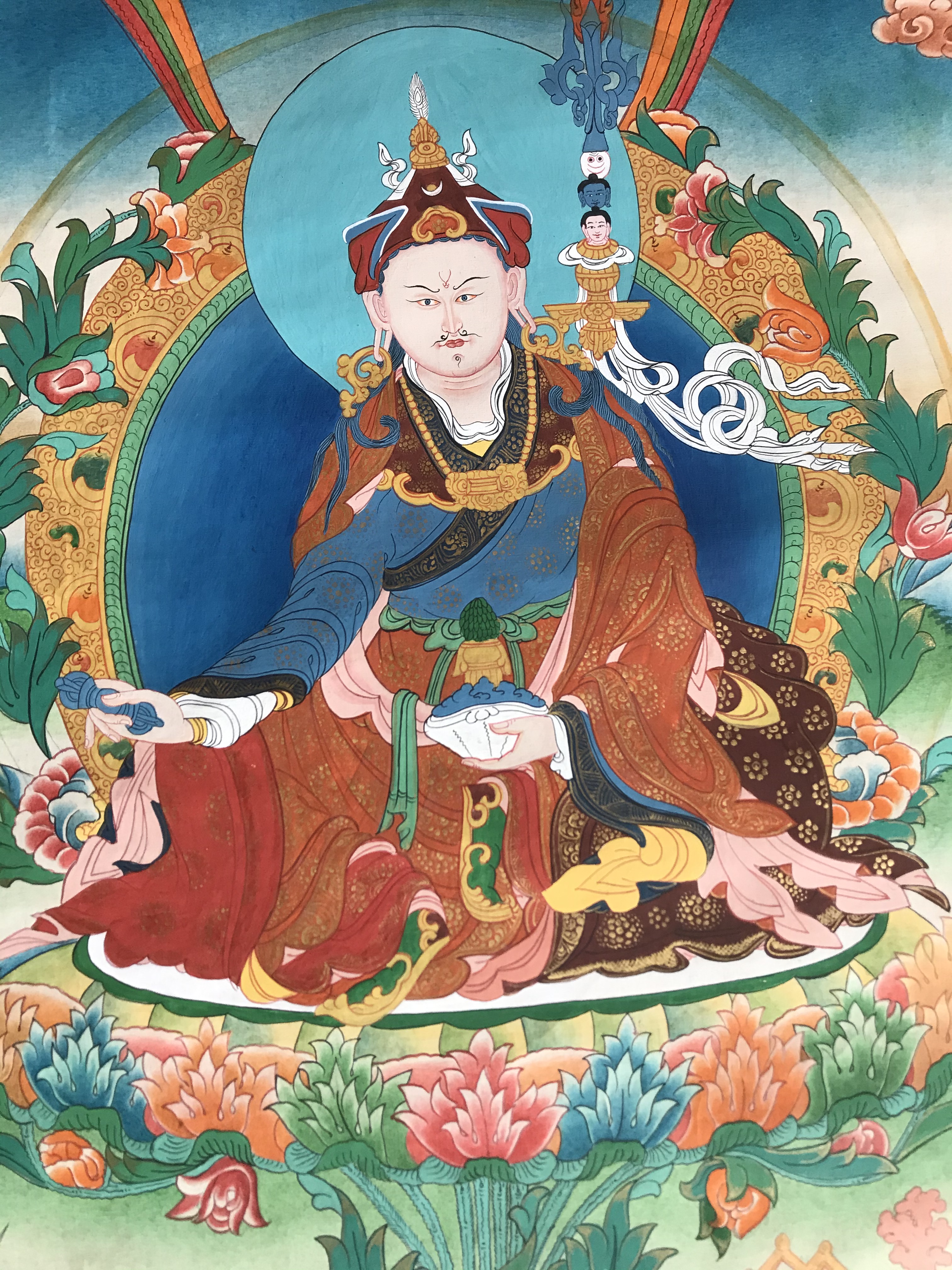 seated on a lotus asana with the legs locked, the right hand holding the vajra