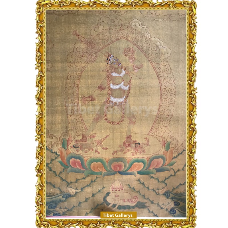 Thangka shows Vajra Yogini, stepping triumphantly on the personfications of