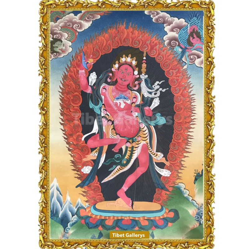 Thangka shows Vajra Yogini, stepping triumphantly on the personfications of