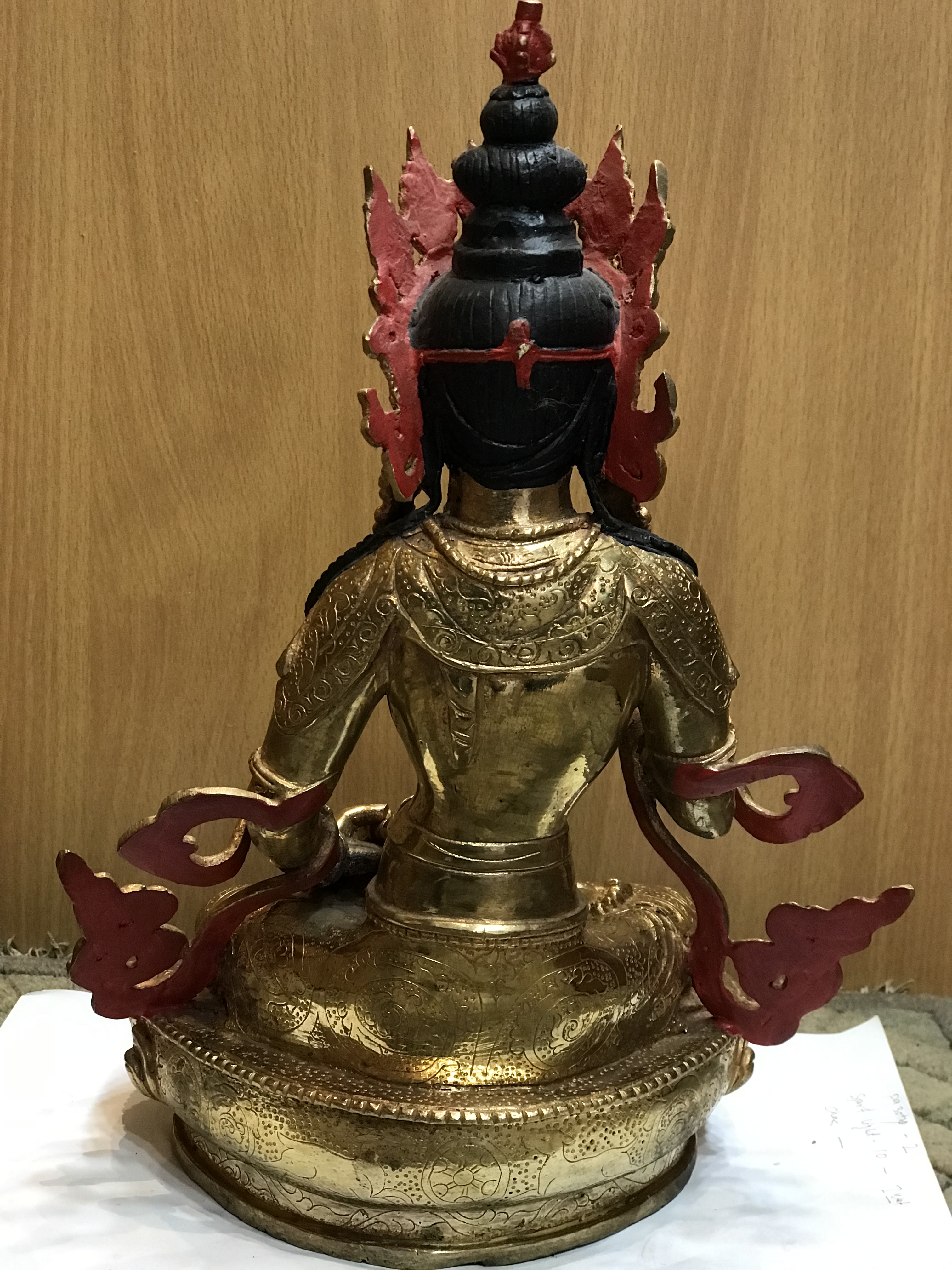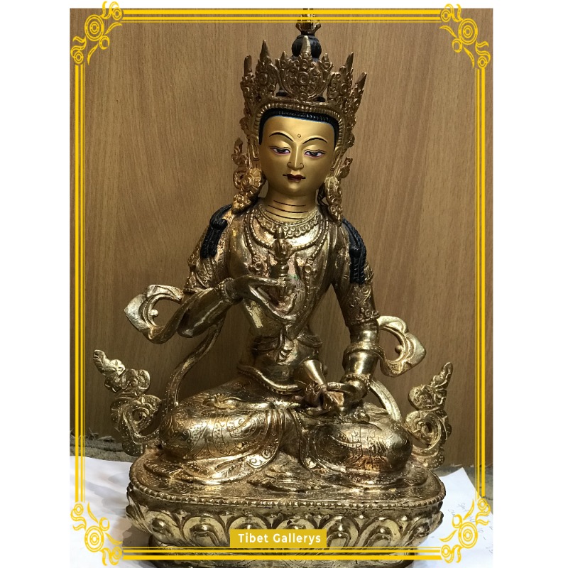 12 Inch Tibetan Dorje Sempa Statue, Partly Fire Gilded 24K Finish, Hand Carved Fine Details