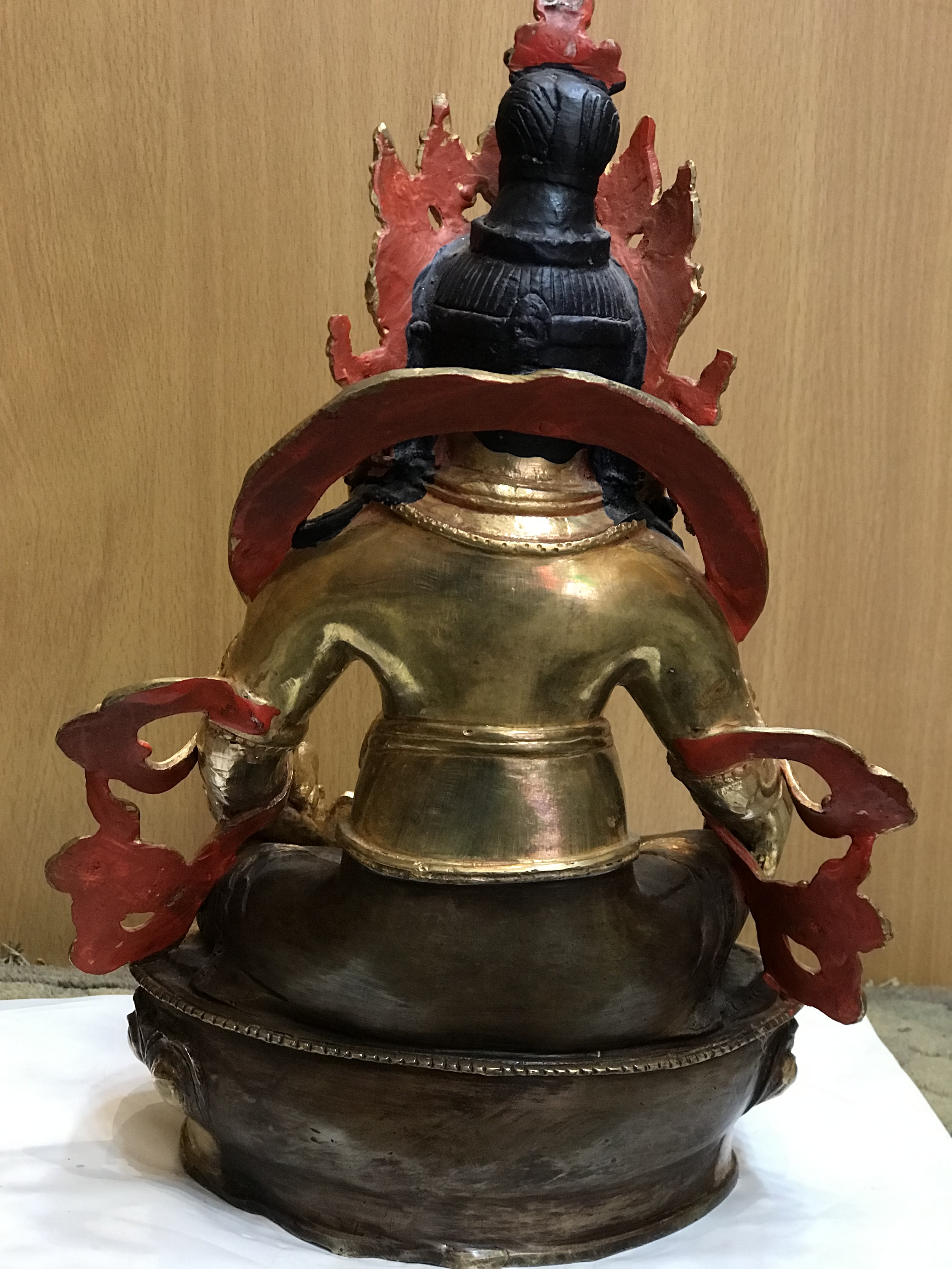 All of the zambhalas, including this Yellow zambhala sculpture are Dharmapala which are protectors of the Dharma. Additionally, Yellow zambhala was personally invited to become a Dharmapala by Gautama Buddha himself. This was in show of gratitude for protecting the Buddha as he gave a sermon.