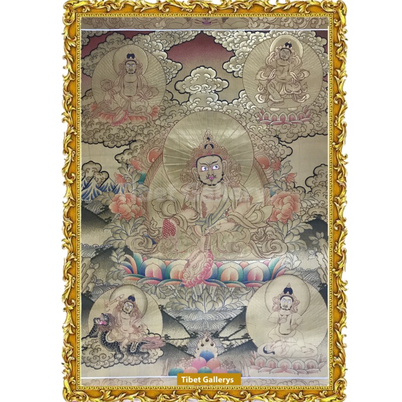 Zambhala is the protector of all linages and of all sentient beings from all sickness and difficulties. Zambhala is a bodhisattva of material and spiritual wealth as well as many other things, especially of granting financial stability. Zambhala is the god of wealth an appropriately a member of the jewel family. In Hindu mythology, Zambhala is also known as Kubera. Zambhala is also believed to be an emanation of Avalokiteshavara or Chenrezig, the bodhisattva of compassion. There are five different wealth Zambhala, each has their own practice and mantra to help eliminate poverty and creates financial stability. He is usually shown sitting in the lotus, sun, and the moon disk. As with all of the Zambhala, he holds a mongoose in his left hand which produces jewels to give to the need